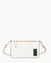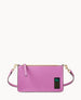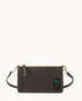 One inside pocket. One inside key hook. Removable strap. Strap drop length 11". Lined. Zipper closure.