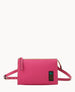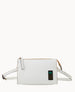 Outside zip pocket. Inside zip pocket. Inside pocket. Inside key hook. Adjustable strap. Detachable strap. Removable strap. Strap drop length 25". Lined. Zipper closure.