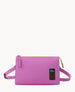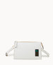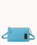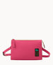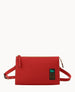 Outside zip pocket. Inside zip pocket. Inside pocket. Inside key hook. Adjustable strap. Detachable strap. Removable strap. Strap drop length 25". Lined. Zipper closure.