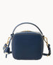 One outside slip pocket. One inisde slip pocket. One inside card slot. Shoulder strap drop length 23". Handle drop length 2". Adjustable and detachable strap. Lined. Feet. Zipper closure. Removable medallion.