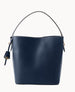 Two pockets. One center zip pocket. One inside zip pocket. One inisde slip pocket. One inside card slot. Shoulder strap drop length 21". Handle drop length 6". Adjustable and detachable strap. Lined. Feet. Magnetic snap closure. Removable medallion.