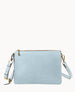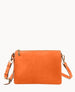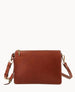 One inside zip pocket. One inside pocket. Strap drop length 10". Lined. Feet. Removable medallion. Zipper closure.