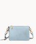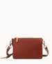 Two inside pockets. One inside zipper pocket. One inside credit card slot. Adjustable and detachable strap. Shoulder strap drop length 23.5". Removable medallion. Lined. Zipper closure.