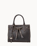 One inside pocket. Cell phone pocket. Handle drop length 4.5". Adjustable and detachable strap. Lined. Feet. Snap closure.