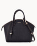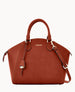 One outside zip pocket. One inside zip pocket. One inside pocket. Cell phone pocket. Handle drop length 4". Adjustable. detachable shoulder strap. Strap drop length 19". Lined. Feet. Zipper closure.