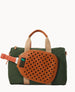 One outside zip pocket. One outside slip pocket. Two interior zip pockets. One racket zip pocket. Zipper closure.