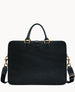 One outside zip pocket. One outside pocket with loop closure. One inside zip pocket. One inside snap pocket. Two inside pockets. Two pen pockets. Cell phone pocket. Inside key hook. Handle drop length 4". Adjustable shoulder strap. Strap drop length 14". Lined. Feet. Zipper closure.