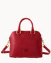 One outside zip pocket. One inside zip pocket. Two inside pockets. Inside key hook. Handle drop length 6". Adjustable. detachable shoulder strap. Strap drop length 23.5". Lined. Feet. Zipper closure.