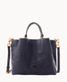 Two outside pocket. One inside zip pocket. Two inside pockets. One inside credit card slot. Cell phone pocket. Inside key hook. Adjustable shoulder strap. Handle drop length 5.00". Strap drop length 18.00" . Lined. Feet. Snap closure.