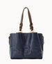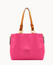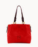 Front and back magnetic snap pockets. One inside zip pocket. Two inside pockets. One credit card slot. Cell phone pocket. Inside key hook. Strap drop length 10". Lined. Feet. Magnetic snap closure.