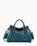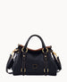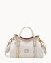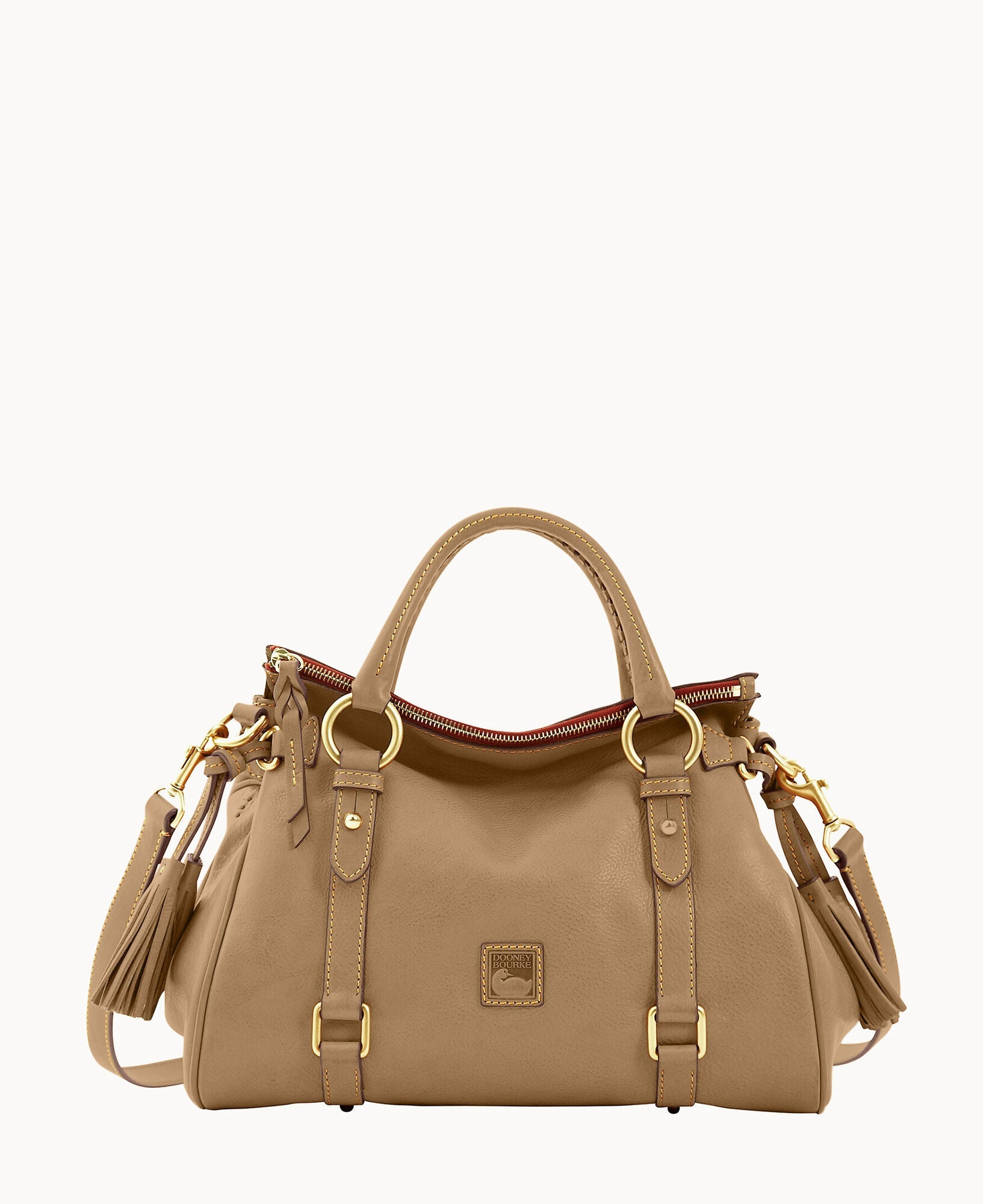 One inside zip pocket. Two inside pockets. Cell phone pocket. Inside key hook. Handle drop length 4.5". Adjustable. detachable shoulder strap. Strap drop length 19". Lined. Feet. Zipper closure.