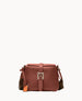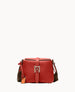 One outside pocket. One inside pocket. Adjustable shoulder strap. Strap drop length 24". Lined. Feet. Patented tongue and loop closure.