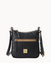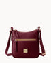 One outside zipper pocket. One inside pocket. One inside zipper pocket. Inside key hook. Lined. Zipper closure. Adjustable strap. Strap drop length 26".