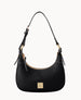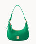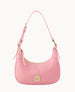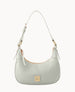 One inside pocket. One inside zip pocket. Inside key hook. Handle drop length 11". Zipper closure. Lined.