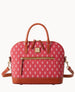 One outside zip pocket. One inside zip pocket. Two inside pockets. Cell phone pocket. Inside key hook. Handle drop length 5". Adjustable. detachable shoulder strap. Strap drop length 21". Lined. Feet. Zipper closure.
