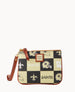 One outside zip pocket. One inside zip pocket. Two inside pockets. Cell phone pocket. Inside key hook. Handle drop length 10". Lined. Magnetic snap closure.