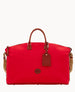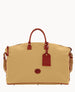 One inside zip pocket. Two inside pockets. Cell phone pocket. Inside key hook. Handle drop length 8". Adjustable twill shoulder strap. Strap drop length 18". Lined. Feet. Zipper closure.