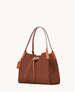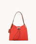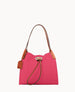Two inside pockets. Inside key hook. Strap drop length 5". Drawstring closure.