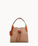 Inside key hook. Strap drop length 5". Drawstring closure.
