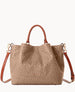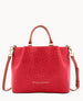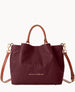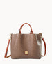 Front and back magnetic snap pockets. One inside zip pocket. Two inside pockets. One credit card slot. Cell phone pocket. Inside key hook. Handle drop length 5". Adjustable shoulder strap. Strap drop length 18". Lined. Feet. Magnetic snap closure.
