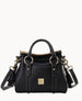 Two outside pockets. Two inside pockets. One inside zip pocket. Inside key hook. Handle drop length 11.25". Strap drop length 20". Feet. Zipper closure. Lined.