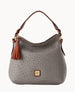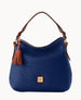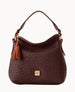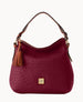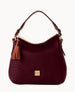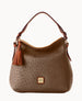 One inside zip pocket. Two inside pockets. Cell phone pocket. Inside key hook. Strap drop length 9". Lined. Zipper closure.