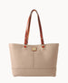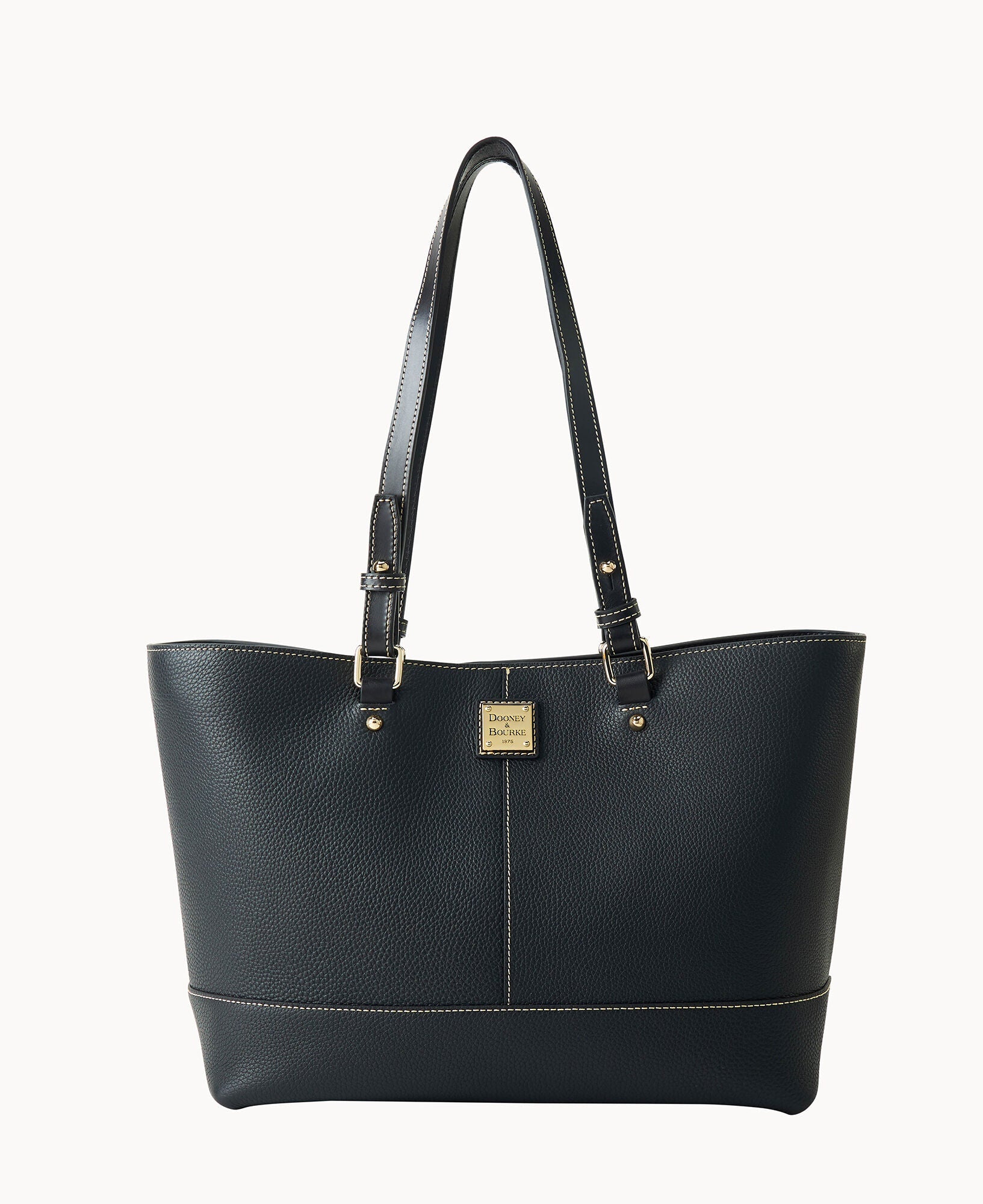 One inside zip pocket. Two inside pockets. Center zip divider compartment. Cell phone pocket. Inside key hook. Strap drop length 11.5". Lined. Feet. Magnetic snap closure.