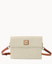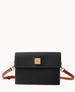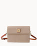 One outside zip pocket. One inside zip pocket. One inside pocket. Inside key hook. Adjustable. detachable shoulder strap. Strap drop length 26". Lined. Magnetic snap flap closure.