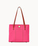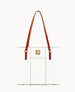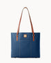 Outside front and back pockets. One inside zip pocket. Two inside pockets. Cell phone pocket. Inside key hook. Handle drop length 12". Strap drop length 12". Lined. Feet. Zipper closure.