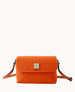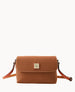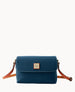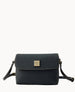 One inside zip pocket. One inside poccket. Inside key hook. Adjustable shoulder strap. Strap drop length 26.5". Lined. Magnetic snap flap closure.