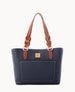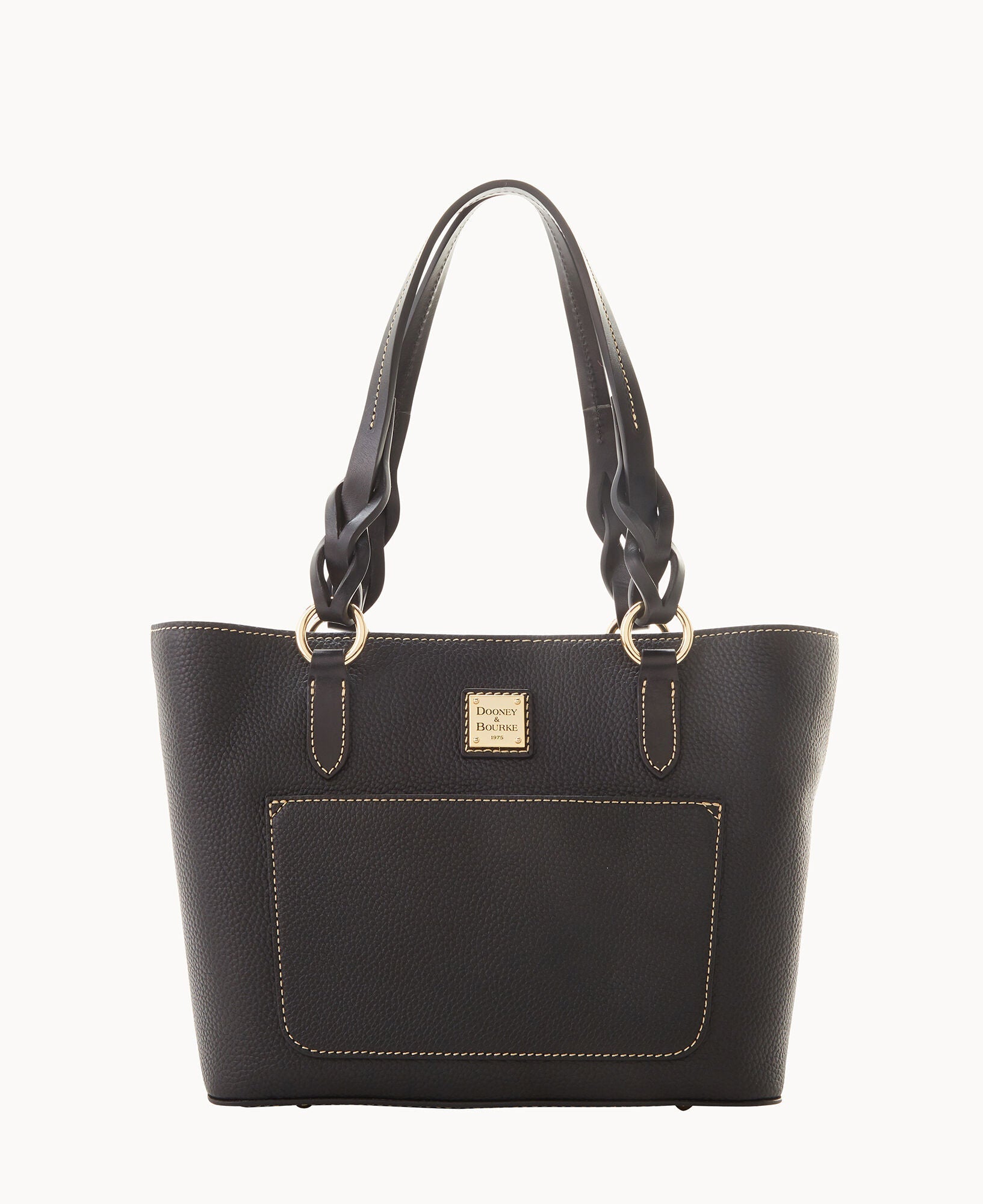 One outside pocket. Two inside zip pockets. Two inside pockets. Cell phone pocket. Inside key hook. Handle drop length 8.25". Handle drop length 8.25". Lined. Feet. Magnetic snap closure.