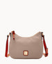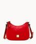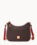 One inside zip pocket. Two inside pockets. Inside key hook. Strap drop length 26.5". Lined. Zipper closure.