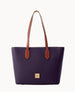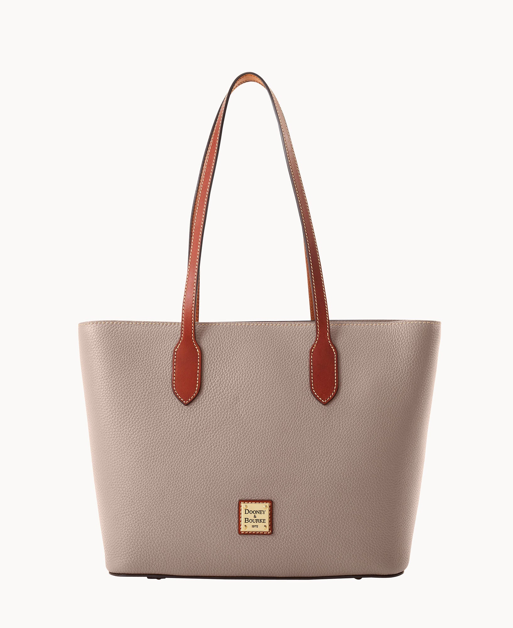 One exterior zip pocket. One interior zip pocket. Two interior slip pockets. One interior cell phone pocket. One interior snap pocket. Interior key hook. Feet. Lined. Zipper closure. Removable strap. Adjustable strap. Strap drop length 19". Zipper closure.