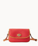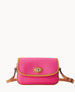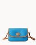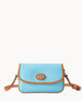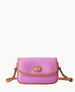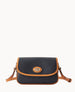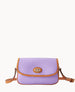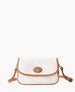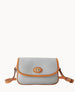 Outside pocket. One inside pocket. Inside key hook. Adjustable and detachable shoulder strap. Shoulder strap drop length 27". Lined. Turnlock closure.