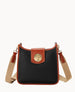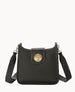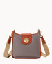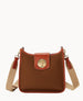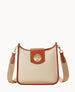 One outside pocket. Two inside pockets. One inside zip pocket. Inside key hook. Adjustable. Detachable strap. Strap drop length 20". Lined. Turnlock closure.