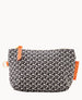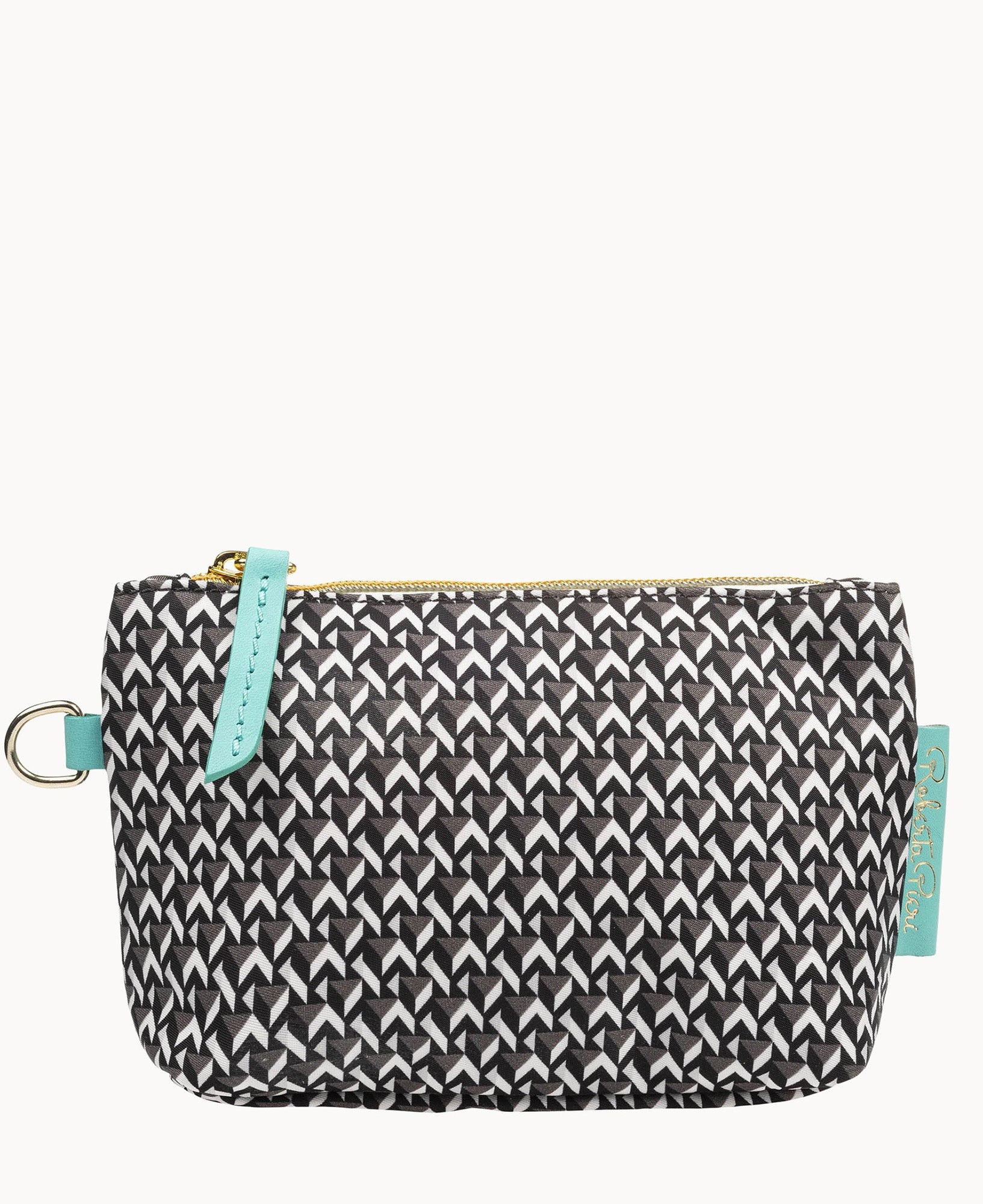 Made in Italy. Nylon texture. Zipper closure. D ring clips onto keys or into bag. Suede interior. High quality Italian leather.