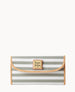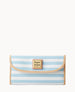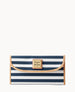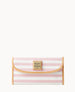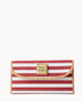 Outside zip pocket. Inside pocket. License pocket with window. Eight credit card slots. Two bill compartments. Lined. Snap closure.