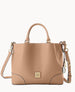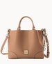 Front and back magnetic snap pockets. One inside zip pocket. Two inside pockets. One credit card slot. Cell phone pocket. Inside key hook. Handle drop length 5". Adjustable. detachable shoulder strap. Strap drop length 18". Lined. Feet. Magnetic snap closure.