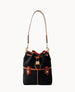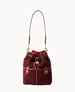 Two outside pockets. Two inside pockets. One inside pocket. Inside key hook. Detachable strap. Drawstring closure.