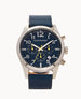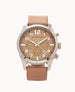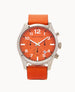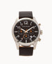 44mm face diameter. Chronograph Japanese movement with date between hour 4 & 5. Stainless steel compass bezel. Nylon and Vacchetta leather strap. Water resistant up to 50 meters. Strap sized to fit wrists between 7" and 9".