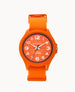 38mm face diameter. Swiss movement on tonal dial with accent markers. Brushed tonal stainless steel case. Water resistant up to 50 meters. Rubber strap. Strap sized to fit wrists between 5.75" and 8.25".